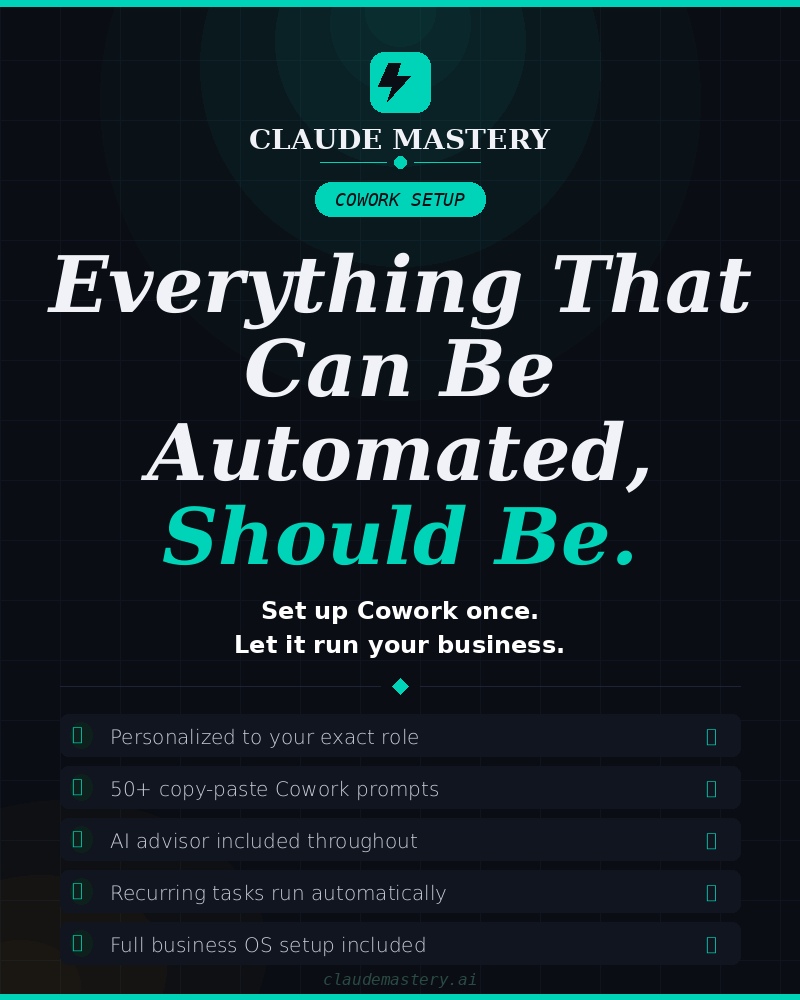 You didn't start your business to spend 3 hours a day writing emails, filing documents, chasing invoices, updating reports, and doing everything your business needs just to keep moving. That's what Claude Mastery fixes.